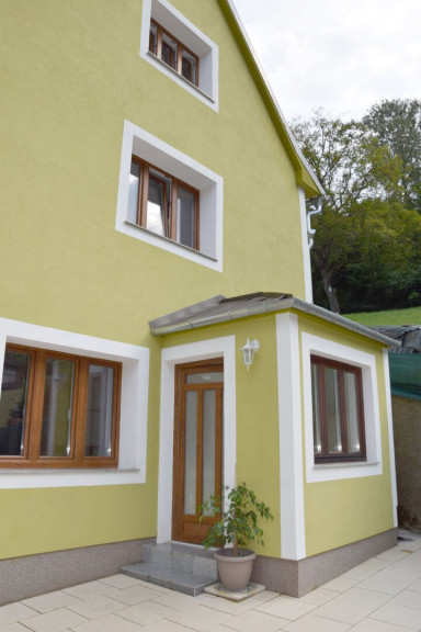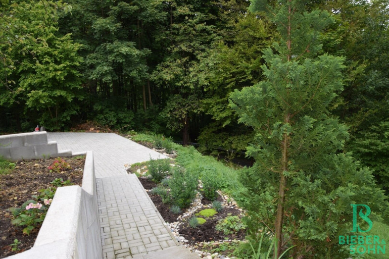 Über die Einfahrt, die genügend Platz für 4 PKWs bereit hält, gelangt man über die schöne Terrasse zum Hauseingang an der Westseite, denn ein weiterer Eingang befindet sich an der Ostseite.