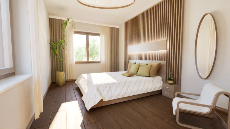 - Beleuchtung: Deckeneinbauspots in neutralen Räumen
