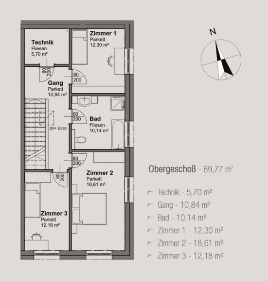 - Heizung: Je Haus eine Luftwärmepumpe mit Fußbodenheizung im EG und OG
