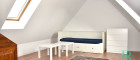 Das Obergeschoss ist ein ganz persönlicher Rückzugsort: der lichtdurchflutete „Elternbereich“ mit einem extra Wohnzimmer und mit herrlichem Blick in die grüne Umgebung, ein Schlafzimmer und ein Duschbad sowie zwei Räume, die sich ideal als Kinderzimmer, Multifunktionsraum fürs Heimkino & Spiel oder Ankleide nutzen lassen. Ein Wannenbad vervollständigt diese Etage.