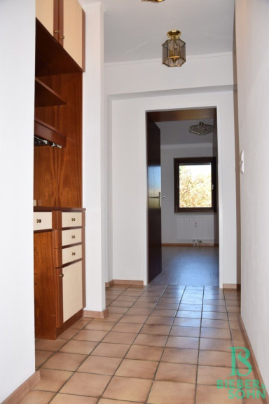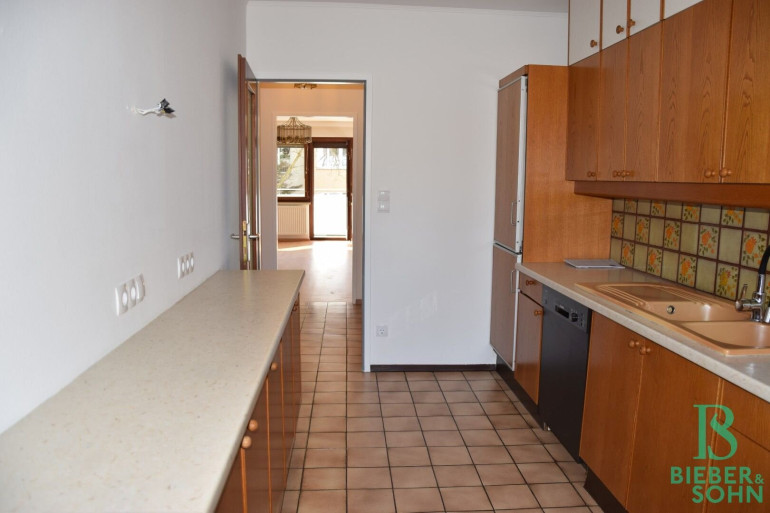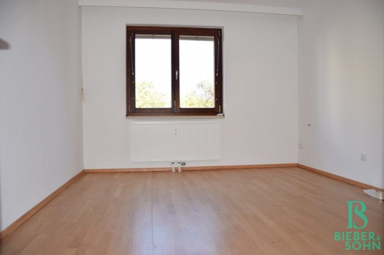 Die Einrichtung ist sehr gepflegt, die Einbaumöbel aus Vollholz und in einem der Zimmer, das auch als Büro Verwendung finden kann, ist ein Doppelschrankbett untergebracht. Die großflächige Fensterfront im Wohnraum wird zusätzlich zu den Innenrollos durch eine elektrischen Aussenrollo beschattet. Von der Küche aus sowie von den drei Zimmern aus hat man einen wunderbaren Grünblick und absolute Ruhelage!