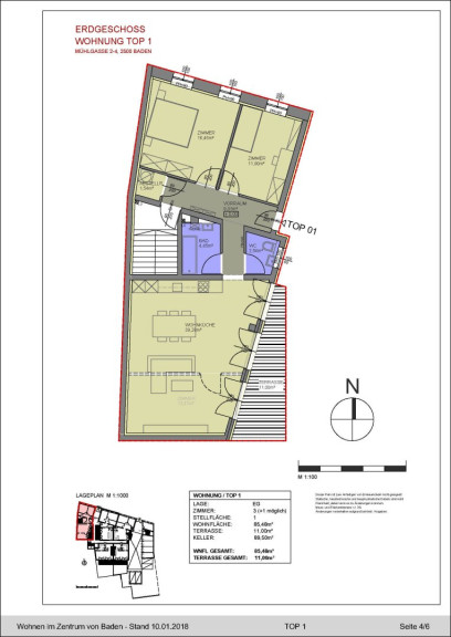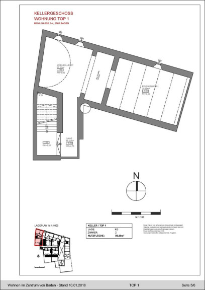 Nahe dem Zentrum wurde mit Bedacht auf "Altes" ein modernes Wohnhaus errichtet, in dem sich im Erdgeschoss diese Wohnung mit dem einzigartigen, 90m² messenden "Weinkeller" befindet.