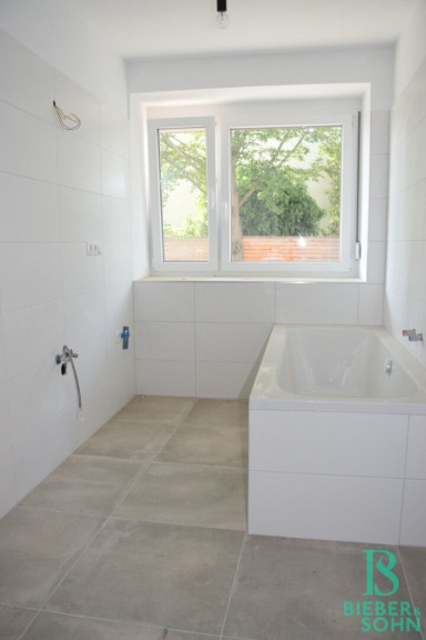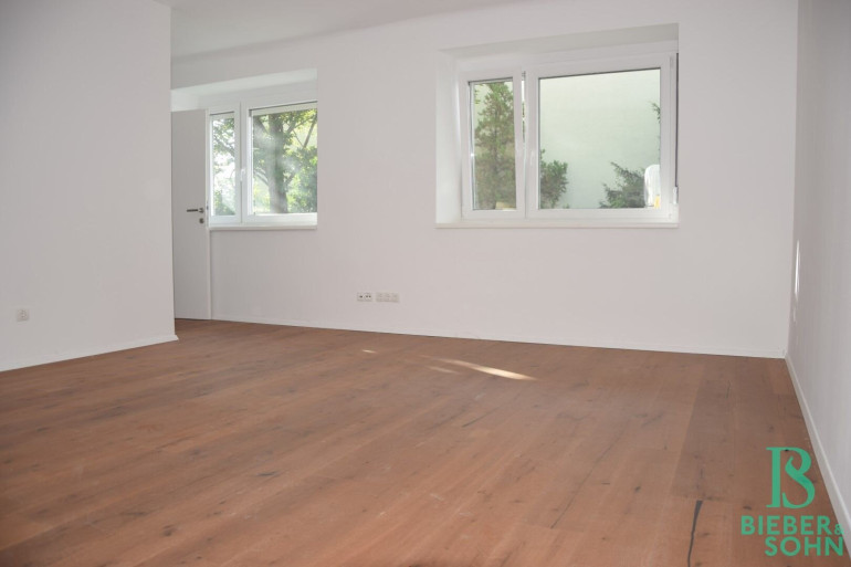 Über den Innenhof gelangt man zur im erhöhten Erdgeschoss gelegenen, nach Süden ausgerichtete ca. 128m² messende Wohnung, die im Eingangsbereich ein großes Vorzimmer vorzuweisen hat! Von hier aus ist ein großes Zimmer mit en-suite Bad zu betreten, das als Au-pair- oder Gästezimmer Verwendung finden kann. Vom Vorraum weiterführend über den Flur sind 2 weitere Räume und ein Bad mit Wanne und Dusche zugänglich sowie ein separates WC.