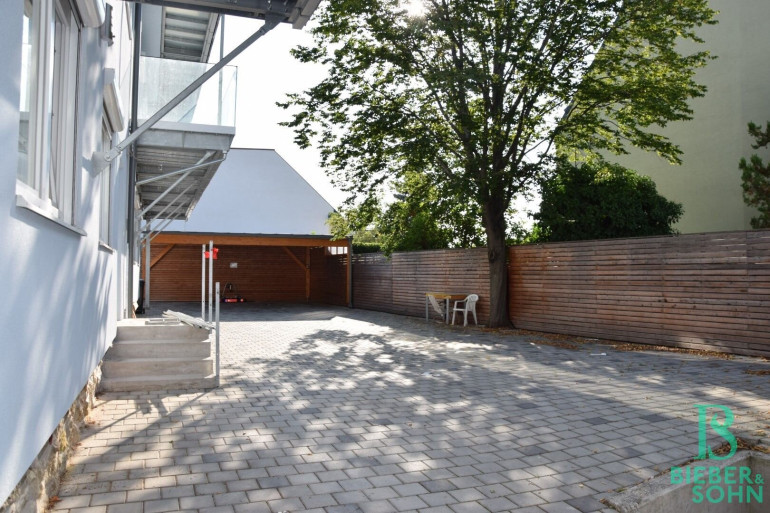 Über die Hauseinfahrt, mit elektrischem Tor, ist ein PKW-Stellplatz erreichbar, der der Wohnung zugeordnet und im Kaufpreis inkludiert ist.