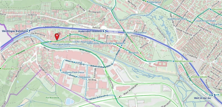 Die öffentliche Verkehrsanbindung ist ausgezeichnet, in wenigen Gehminuten ist die Schnellbahnstation Weidlingau erreichbar, die Buslinien 50A und 447 sind vor der Türe vorzufinden.