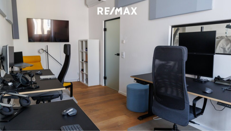 Auf ca. 125 m², gelegen im 2. Stock (mit Lift über einen Halbstock erreichbar), steht Ihnen eine außergewöhnliche Arbeits- und Kundenumgebung zur Verfügung.