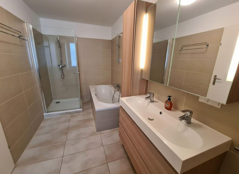 - Badezimmer mit Dusche, Badewanne & Fenster, separates WC