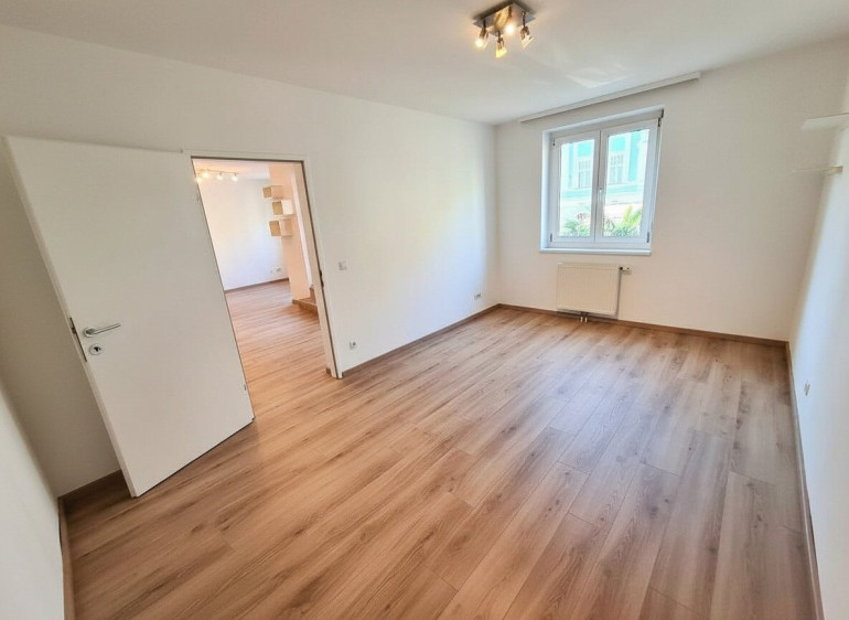 Die Wohnung verfügt über zwei Schlafzimmer, eines hofseitig, das zweite straßenseitig