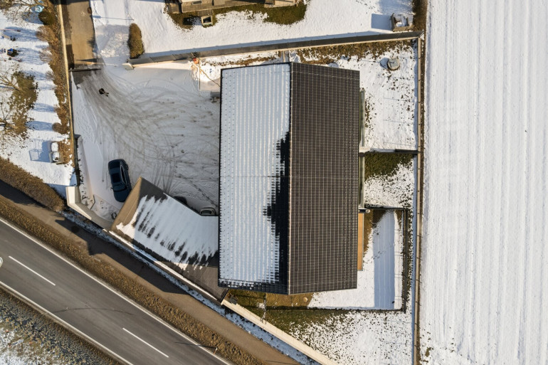 Ein Carport-Stellplatz mit angrenzendem Abstellraum für Fahrräder oder Motorräder bietet Ihnen praktischen Stauraum, während ein zusätzlicher Freiparkplatz weiteren Komfort garantiert. Die Holzriegelbauweise sorgt für eine nachhaltige und effiziente Bauqualität, die auch umweltfreundlich ist.