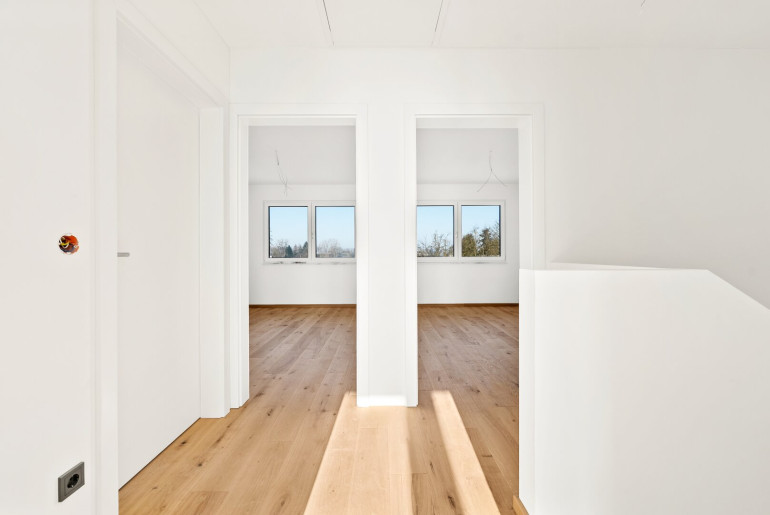Besonderes Augenmerk wurde auf Wohnkomfort und Funktionalität gelegt: Alle Fenster sind mit Rollläden sowie integrierten Insektenschutzgittern ausgestattet, um Ihnen zu jeder Jahreszeit höchsten Komfort zu bieten. Die 3-fach verglasten Fenster gewährleisten optimale Energieeffizienz und ein angenehmes Wohnklima.