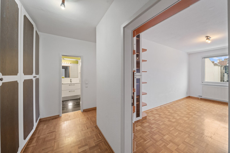Die Raumstruktur überzeugt durch Funktionalität und Wohnqualität: Ein großzügiger Wohnbereich, Schlafzimmer sowie ein Kabinett (ideal als Kinder-, Gäste- oder Arbeitszimmer) bieten flexible Nutzungsmöglichkeiten. Die Wohnküche rundet das stimmige Raumkonzept ab. Eine untergeordnete Nutzung als eigenes Büro ist – bei überwiegender Wohnnutzung – möglich und eignet sich ideal für Homeoffice ohne Parteienverkehr.