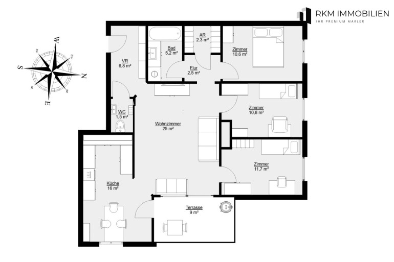 ostseitig ausgerichteten Terrasse (ca. 9 m²)