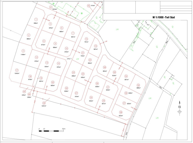 Projektgröße: Ca. 35.000 m2 Gesamtareal mit 38 Baugrundstücken, die flexibel kombinierbar sind und eine effiziente Umsetzung in mehreren Bauabschnitten ermöglichen.