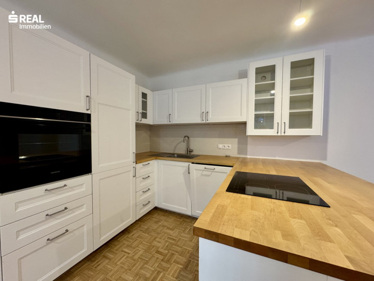 Die neuwertige Küche mit Kochinsel ist mit modernen Geräten ausgestattet, die Parkettböden in den Wohnräumen wurden geschliffen und versiegelt und auch eine Sicherheitstüre eingebaut, beheizt wird mittels Gasetagenheizung.