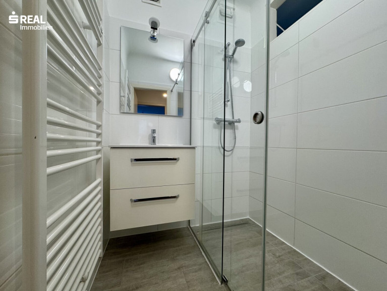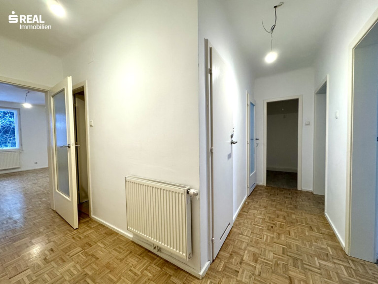Von der Straße gelangt man über einen Weg und den Innenhof zur betreffenden Stiege, die erst 2018 umfangreich sanierte Wohnung befindet sich im Hochparterre. 80m² Wohnfläche unterteilen sich in geräumigen Vorraum, großen Wohnraum mit neuer Küche und Ausblick ins Grüne, 2 Schlafzimmer mit Blick in den Innenhof, ein topmodernes Badezimmer mit barrierefreier Dusche, WC mit Handwaschbecken und auch ein Abstellraum, die ursprüngliche separate Küche bietet Platz für ein Arbeitszimmer.
