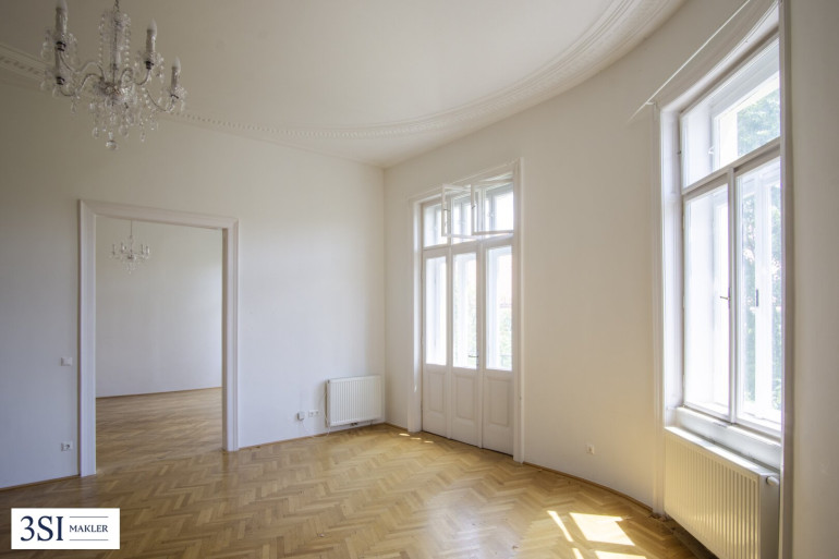 - Französisches Fischgrätparkett, prachtvolle Stuckleisten, traditionelle Kastenfenster mit Laibungen, hohe Türen im Alt-Wien Stil