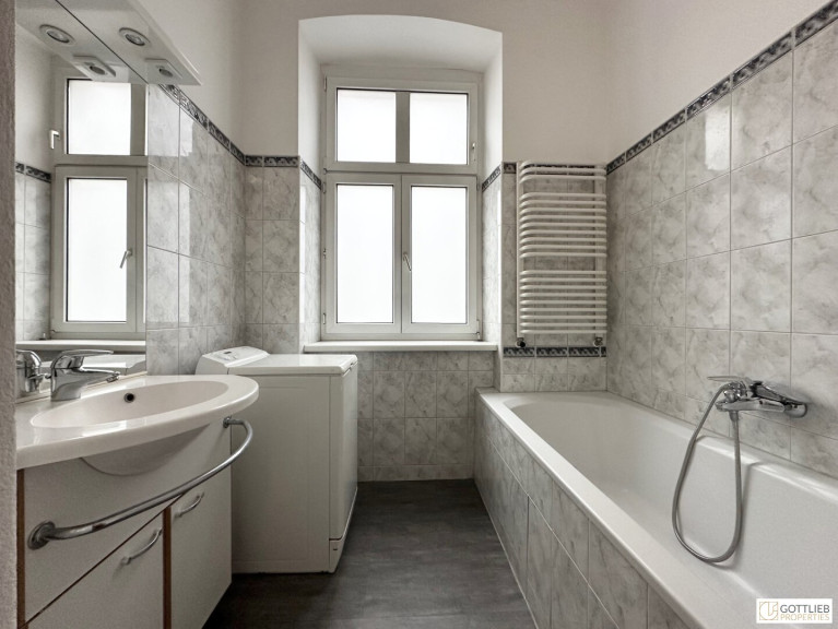 + Wannenbad mit Waschbecken, Handtuchwärmer und Waschmaschine