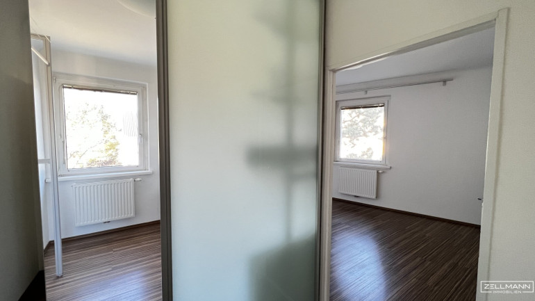Bereits das geräumige Vorzimmer bietet ausreichend Platz für Garderobe und Stauraum und schafft einen angenehmen ersten Eindruck. Von hier aus sind alle Räume gut und zentral begehbar. Zwei Schlafzimmer stehen zur Verfügung, die sich sowohl als klassische Schlafräume als auch als Kinder-, Gäste- oder Arbeitszimmer eignen. Besonders praktisch ist, dass eines der Schlafzimmer über einen begehbaren Schrank verfügt, der zusätzlichen Stauraum schafft und für Ordnung sorgt.