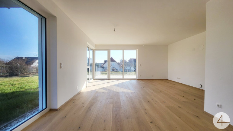 - Erdgeschoß mit rund 88m2 - offener Wohn-Ess-Küchenbereich ca. 35m2, 2 Zimmer, Bad, WC, Abstellraum und Vorzimmer