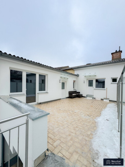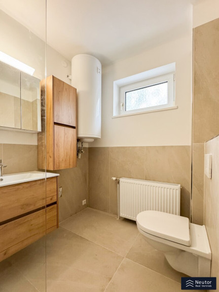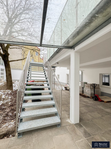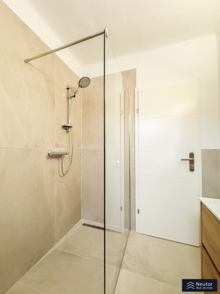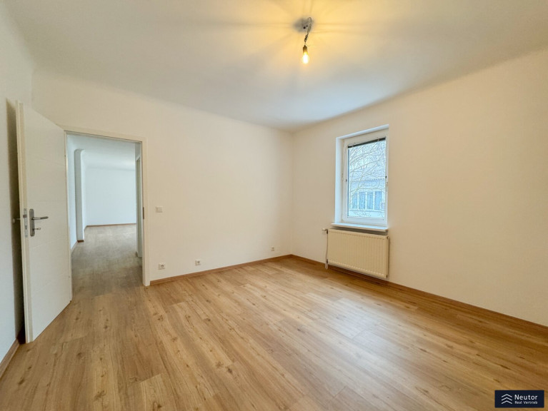 Bereits beim Betreten der Wohnung offenbart sich die gelungene Verbindung aus hochwertiger Sanierung und einladender Wohnatmosphäre. Über einige Stufen erreicht man die neu sanierte Terrasse, die den idealen Übergang zwischen Innen- und Außenbereich bildet. Beim Betreten der Wohnung empfängt Sie ein stilvoll gestalteter Vorraum, der mit einer großzügigen Garderobenlösung ausgestattet ist. Dieser Bereich bietet nicht nur ausreichend Stauraum für Kleidung und Accessoires, sondern überzeugt auch durch seine funktionale Eleganz, die einen ersten Eindruck von Exklusivität vermittelt. Die klare Linienführung und die hochwertigen Materialien setzen bereits hier den Ton für den besonderen Charakter der Wohnung. Zur Linken des Eingangsbereichs öffnet sich die beeindruckende Wohnküche, die mit einer modernen Einbauküche ausgestattet ist. Diese ist nicht nur funktional, sondern begeistert mit ihren durchdachten Stauraumlösungen, die sie zum idealen Ort für kulinarische Kreationen machen. Mehrere Fenster durchfluten den Raum mit natürlichem Tageslicht und sorgen für eine optimale Belüftung – perfekt, um beim Kochen eine frische und inspirierende Atmosphäre zu genießen. Die offene Gestaltung der Wohnküche lädt zu gemeinsamen Mahlzeiten oder geselligen Abenden ein und verbindet Funktionalität mit einem einladenden Flair.Über die Wohnküche gelangen Sie in das luxuriös ausgestattete Badezimmer, das mit einer modernen, bodengleichen Dusche, einem hochwertigen WC und einem eleganten Waschtisch überzeugt. Ein weiteres Fenster sorgt für hervorragende Lichtverhältnisse und eine natürliche Belüftung, die den Raum zu einer Wohlfühloase macht. Das Herzstück der Wohnung ist das großzügig geschnittene Schlafzimmer, das durch seine intelligente Raumaufteilung und seine lichtdurchflutete Atmosphäre besticht. Der Raum bietet ausreichend Platz für ein komfortables Bett, einen geräumigen Kleiderschrank und weitere individuelle Gestaltungsmöglichkeiten. Die ruhige Lage und die harmonische Gestaltung machen das Schlafzimmer zu einem idealen Rückzugsort, der Erholung und Geborgenheit verspricht.