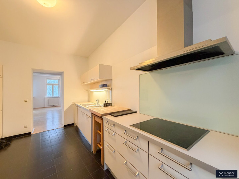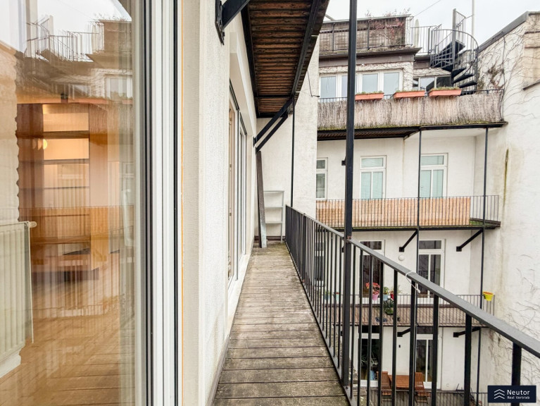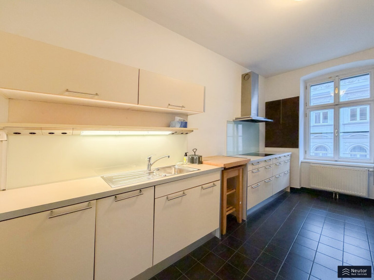 Diese stilvolle Altbauwohnung in ruhiger Innenhoflage verbindet klassischen Charme mit modernem Wohnkomfort. Ein Lift sorgt für einen bequemen Zugang und unterstreicht den gehobenen Standard. Beim Betreten gelangen Sie in den kompakten Vorraum, welcher mittels Raumtrenner vom großzügigen und lichtdurchfluteten Wohnzimmer abgetrennt istl. Die weitläufige Fensterfront sorgt für viel Tageslicht und eine offene, einladende Atmosphäre. Hier finden sowohl eine komfortable Wohnlandschaft als auch ein Essbereich mühelos Platz. Vom Wohnzimmer gelangen Sie direkt auf den typisch wienerischen Balkon, welcher als Pawlatsche ausgebildet ist. Ein idealer Ort, um im Freien zu entspannen und die Ruhe zu genießen. Ein zentral gelegener Flur führt zu den weiteren Räumen: Ein separates WC mit Handwaschbecken bietet zusätzlichen Komfort, während das Badezimmer mit Badewanne, Handwaschbecken und Waschmaschinenanschluss alle Annehmlichkeiten für den täglichen Gebrauch bereithält. Ein Einbauschrank am Gang sorgt für praktischen Stauraum. Am Ende des Flurs befinden sich zwei flexibel nutzbare Zimmer, ideal als Schlaf-, Kinder-, oder Arbeitszimmer. Beide Räume überzeugen durch ihre angenehme Größe und vielseitige Einrichtungsmöglichkeiten. Die großzügige Küche ist mit hochwertigen Elektrogeräten ausgestattet, bietet viel Arbeitsfläche und Stauraum und eignet sich sowohl für den täglichen Gebrauch als auch für ambitionierte Hobbyköche. Klassische Altbaudetails treffen auf moderne Ausstattung und schaffen ein harmonisches Gesamtbild, ein besonderes Zuhause mit hoher Wohnqualität.
