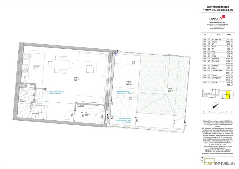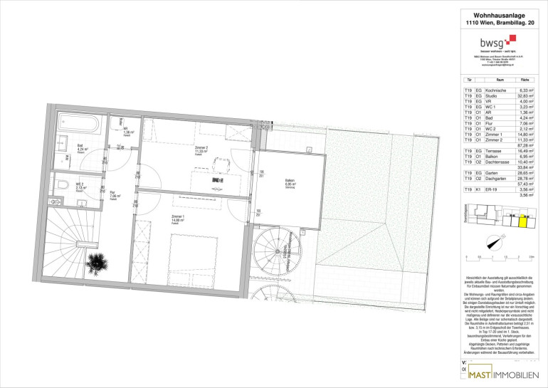 Ein Tiefgaragenstellplatz kann um 39.000 € erworben werden. Der Kaufpreis für die Wohnung beträgt für Anleger € 606.865,18 Netto zzgl. 20% USt.