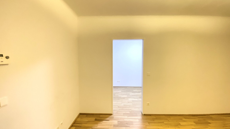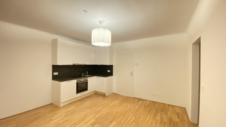 Die Wohnung verfügt über drei Zimmer. Ein Wohnzimmer mit moderner offener Einbauküche, zwei weitere Zimmer, ein Bad mit Dusche und WC.