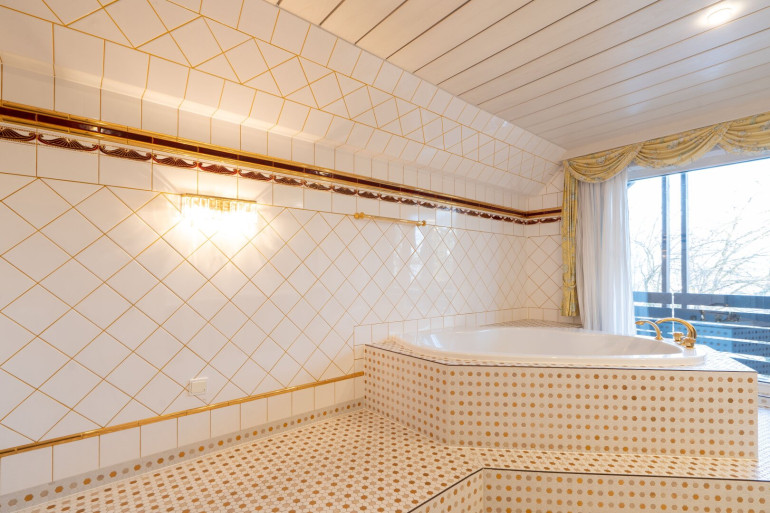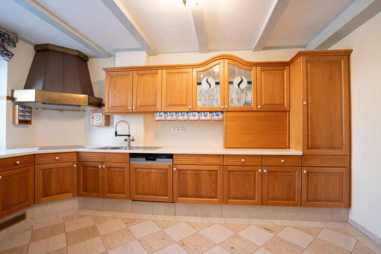 Teppichboden, Parkett, Fliesen, Laminatboden, Einbauküche, Bad mit Fenster, Badewanne, Dusche, Garage, Sauna, Wasch/Trockenraum