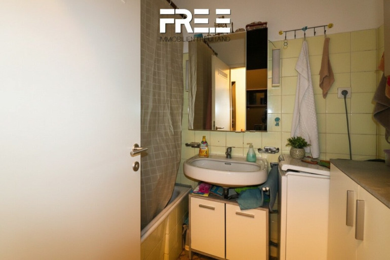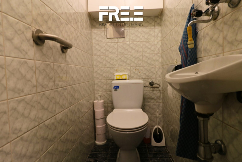 Das Badezimmer ist mit einer Badewanne ausgestattet und könnte wieder modernisiert werden. Die separate Toilette sorgt für zusätzliche Privatsphäre. Eine praktische, vor wenigen Jahren gekaufte Einbauküche ist ebenfalls vorhanden, inklusive aller notwendigen Geräte, nur der Kühlschrank wird von den Eigentümern mitgenommen.