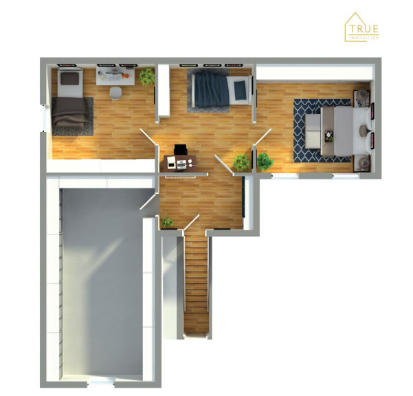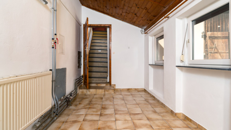 Im Windfang angekommen steht Ihnen geradeaus die Küche, linkerhand das Wohnzimmer, Schlafzimmer und ein weiteres Zimmer zur Verfügung. Rechterhand gelangen Sie ins Bad sowie WC und weiters in einen weiteren Vorraum von welchen Sie in das Obergeschoß gelangen.