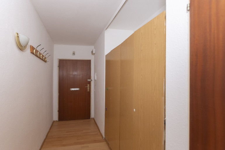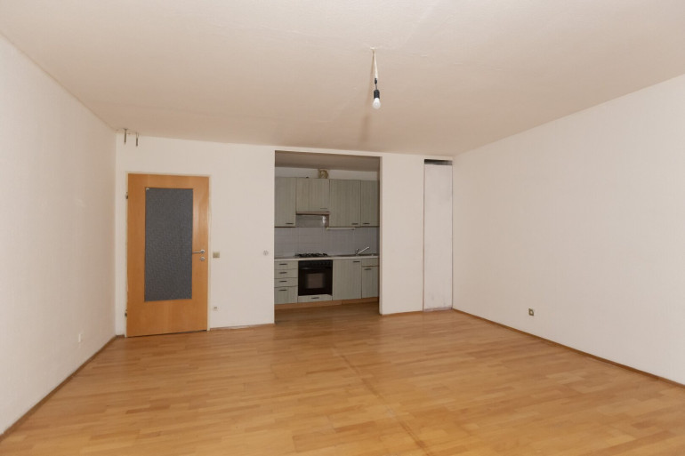 hofseitiges Wohn-/Schlafzimmer mit angrenzendem (abgetrenntem) Küchenbereich, geräumiges Vorzimmer (mit Schranknische),