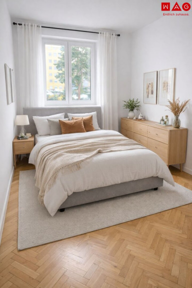 Die Wohnung ist leer und wird ohne Möbel vermietet; mögliche Einrichtungsvorschläge wurden nur zur Veranschaulichung visualisiert.
