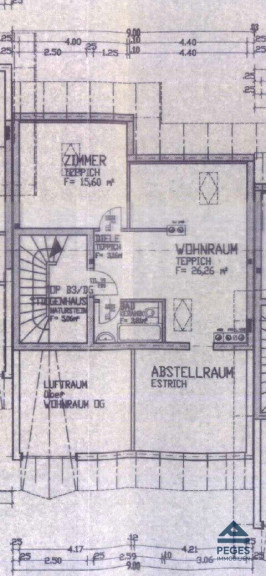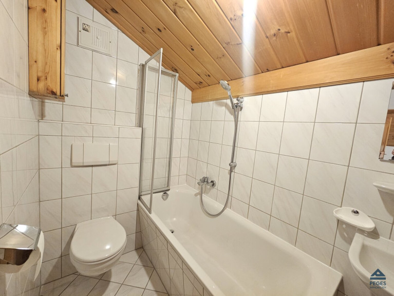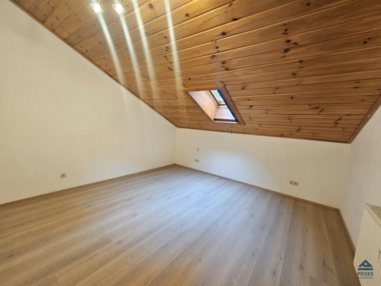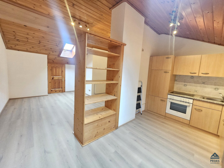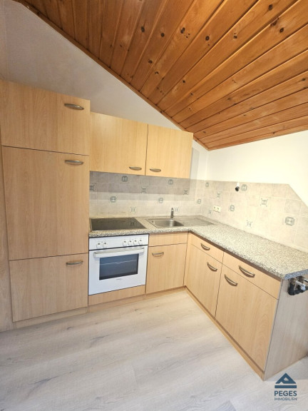 Die Wohnung befindet sich im 2. OG (Dachgeschoss - ohne Lift) des Hauses und verfügt über ein Flächenausmaß von ca. 50 m². Vom offenen Eingangsbereich/ Wohnraum sind Schafzimmer, Sanitärbereich und Küchenbereich (leicht abgetrennt in der Nische; eingerichtet mit Küchenzeile) zugänglich. Das Schlafzimmer ist praktisch geschnitten. Das Bad ist mit Waschbecken, Badewanne und WC ausgestattet. Bedingt durch die Lage im Dachgeschoss ist zum Teil eine höhere Raumhöhe (Mitte) bzw. eine gewisse Mansarde im Schlafzimmerbereich gegeben. Die Wohnung ist in den Wohnräumen mit einem pflegeleichten Vinylboden ausgestattet bzw. das Bad mit hellen Fliesen versehen.
