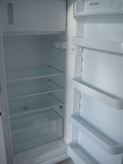 Küche: Einbauküche mit Ober-und Unterschränke, Abwasch, Kühlschrank, Gefrierschrank, Geschirrspüler, E-Herd, Dunstabzug mit Abluft
