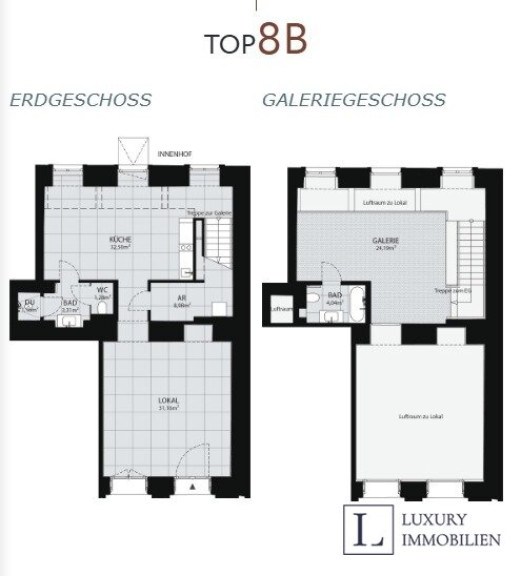 Die K LOFTS überzeugen durch großzügige, offene Grundrisse. Teilweise verfügen die Einheiten über private Kellerflächen, alle Lofts sind mit Mezzanin-Ebenen ausgestattet, die zusätzlichen Raum und vielfältige Gestaltungsmöglichkeiten eröffnen. Hochwertige Materialien und Ausführungen verbinden industriellen Charakter mit eleganten Designelementen. Sichtbares Ziegelmauerwerk, historische Gewölbedecken und große Rundbogenfenster verleihen jedem Loft einen unverwechselbaren Charakter und schaffen ein beeindruckendes Raumgefühl. Die offene Architektur ermöglicht eine flexible Nutzung – ob als Atelier, Büro, Showroom oder als exklusiver Rückzugsort innerhalb eines gewerblichen Umfelds.