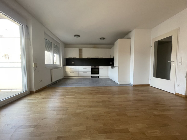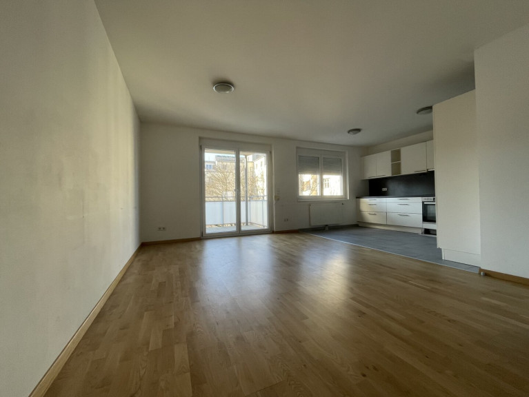 Die verkehrsgünstig gelegene Etagenwohnung bietet einen großzügigen Wohn-Essbereich mit direktem Zugang zum Balkon, Einbauküche inkl. Geräte, zwei Schlafzimmern, Balkon, Badezimmer mit Badewanne, Vorraum und Toilette.
