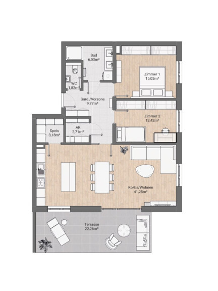 Grün, ruhig und dennoch bestens angebunden Die ruhige Lage in einer naturverbundenen Umgebung sorgt für Erholung direkt vor der Haustür. Zahlreiche gemeinschaftliche Grünflächen schaffen Raum für Begegnung und Erholung – ideal für Kinder, Nachbarn und entspannte Stunden im Freien. Die fußläufig erreichbare Koralmbahn ermöglicht eine schnelle und komfortable Verbindung in die Region – ob zur Arbeit, zum Einkaufen oder zum nächsten Kultur-/ Freizeitangebot.