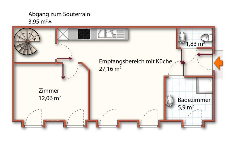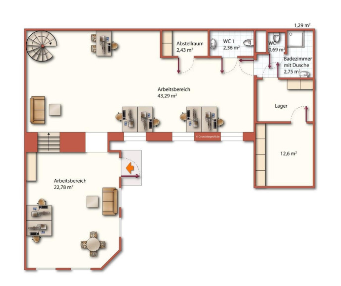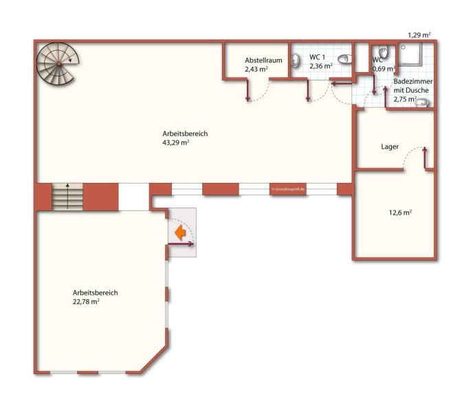 Im Souterrain findet man neben einem weiteren WC und Badezimmer mit Duschmöglichkeit, 2 große Arbeitsbereiche, die perfekt einzurichten und sehr hell sind. Die offenen Ziegelmauern bieten einen ganz eigenen Flair, womit sich die Fläche auch neben Arbeitsplätzen, sehr gut für Ausstellungen, Besprechungsmöglichkeiten oder ähnliches eignet. Die Räumlichkeiten sind obwohl sie sich im Souterrain hofseitig befinden sehr hell und mit großzügigen Fensterflächen ausgestattet - die unteren Räumlichkeiten kann man auch über den netten Innenhof mit Sitzgelegenheit betreten.