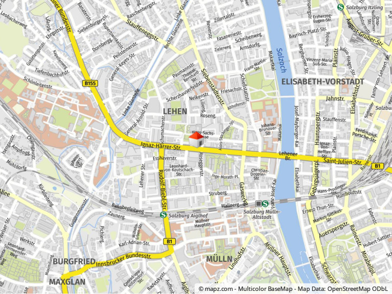 Unweit der Tribüne Lehen in vorderster Front an der Ignaz-Harrer-Straße gelegen, ist das Objekt öffentlich ausgezeichnet erreichbar. Die Buslinien 2, 12, 14 und 21 halten wenige Meter vom Geschäftslokal entfernt. Öffentliche Parkplätze befinden sich in der nächsten Seitenstraße, zusätzlich befindet sich vor dem Haus eine Ladezone, ideal für Anlieferungen und Kunden.