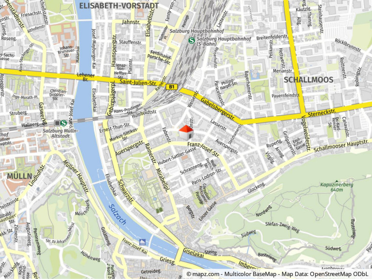 Die Franz-Josef-Straße mit ihrer schönen Allee bietet eine entspannte Umgebung mit zahlreichen Geschäften des täglichen Bedarfs sowie praktische Nähe zur Salzburger Altstadt.