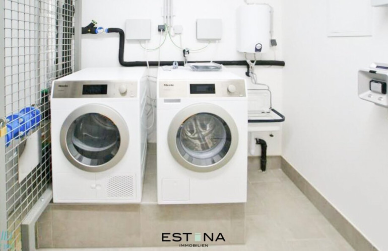 Fliesen, Parkett, Wohnküche / offene Küche, Personenaufzug, Badewanne, Garage, Wasch/Trockenraum