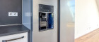 - 1 Offene Küche mit komplett ausgestatteter hochwertiger Einbauküche inkl. aller Geräte (großer Kühl-Gefrierschrank mit Eiswürfel-Spender, Herd, Backofen, Dunstabzug, Geschirrspüler) sowie Kücheninsel