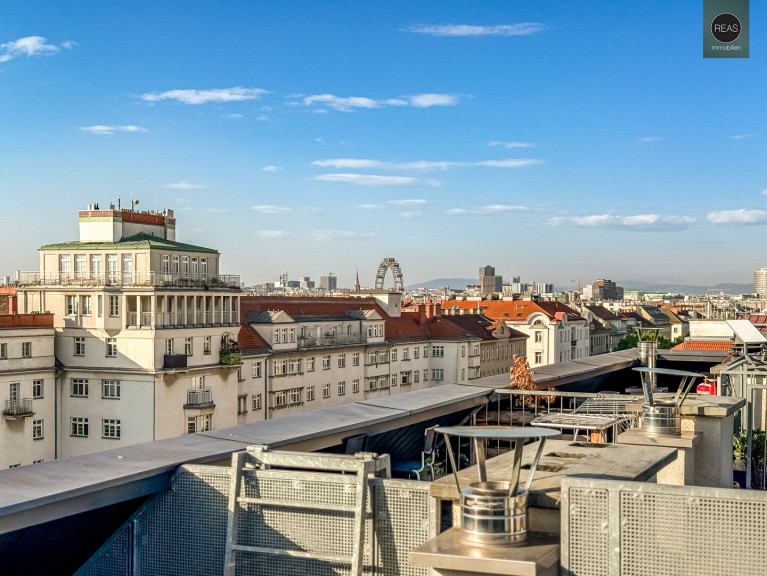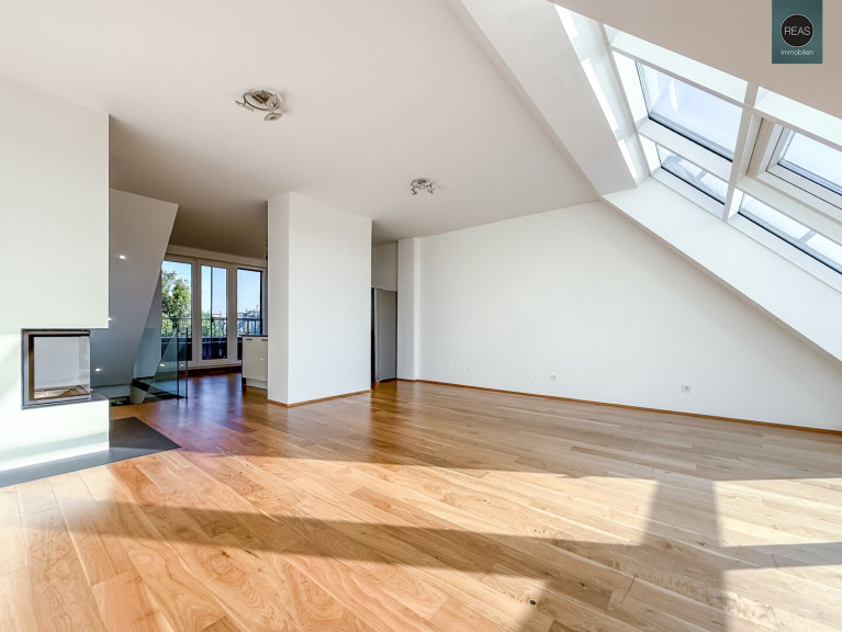 Zum Verkauf gelangt eine moderne Dachgeschoss - Maisonette - Wohnung in der Leopoldstadt (1020 Wien). Das Luxusapartment verfügt über 2 Terrassen und einen offenen Kamin im Wohnbereich!