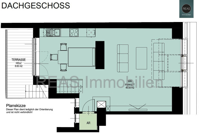 Einzelne Bilder oder Visualisierungen in den Vermarktungsunterlagen, Exposés oder Inseraten wurden unter Umständen digital, teilweise auch mithilfe von künstlicher Intelligenz (KI), bearbeitet und dienen ausschließlich der Veranschaulichung. Sie können vom tatsächlichen Zustand, der Ausstattung oder Ausführung der Immobilien abweichen. Verbindlich sind ausschließlich die Angaben im Kauf-/Mietangebot sowie bei Besichtigung vor Ort.