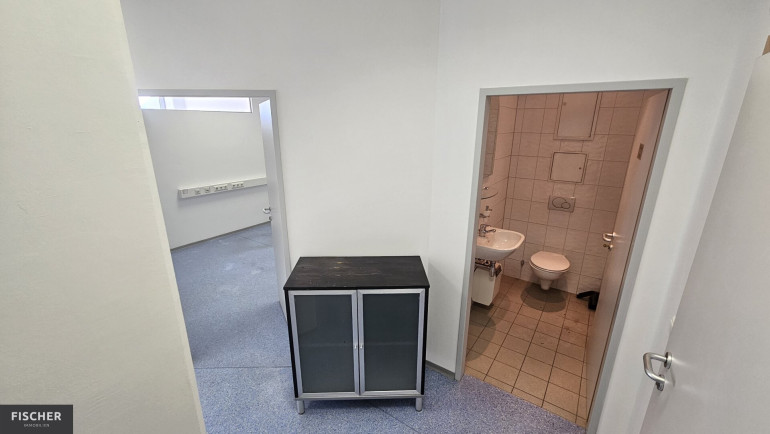 Die zwei Räumer dieser Immobilie können flexibel genutzt werden – ob als Büro, Praxis oder Beratungsraum. Der kleinere der beiden Räume bietet auch Anschlüsse für z.B. eine kleine Küchenzeile.