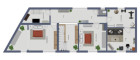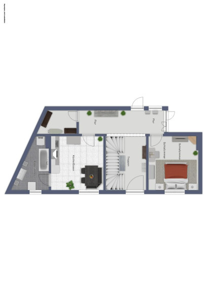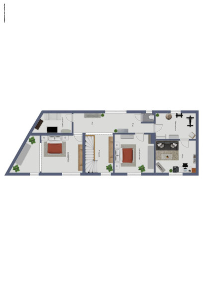 - Erdgeschoss (ca. 71 m²): Wohnraum mit integrierter Küche, Schlafzimmer, Badezimmer, separates WC, Vorraum, Abstellraum