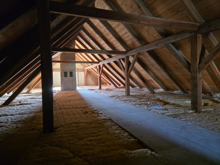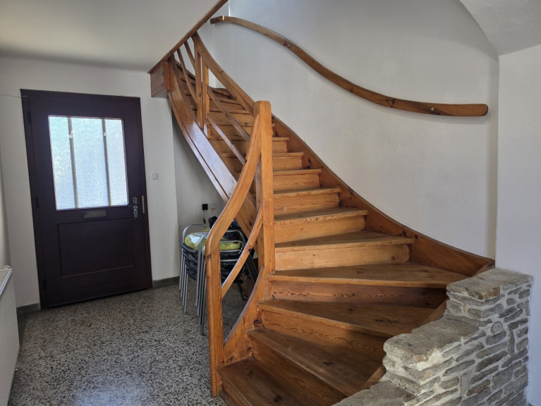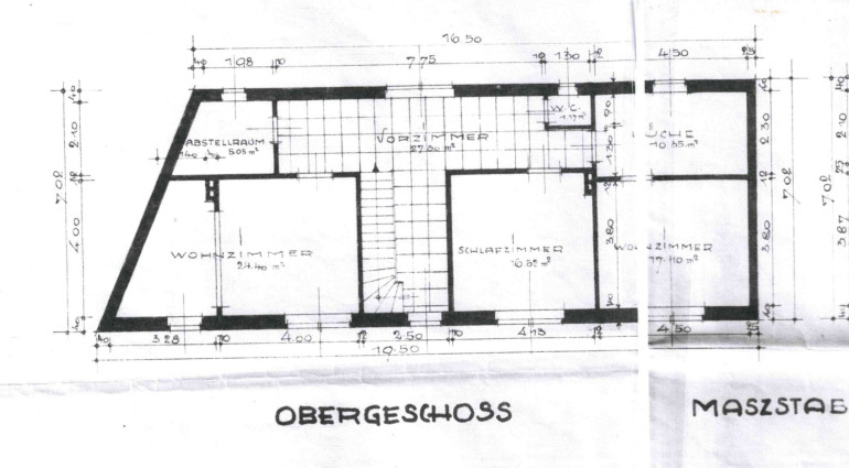 - Obergeschoss (ca. 102 m²): geräumiges Wohnzimmer, 3 Schlafzimmer, Badezimmer mit Anschluss für Dusche, separates WC, Vorraum