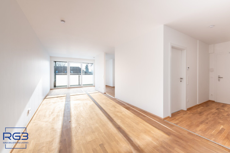 Mit dem Lift fahren Sie bequem in den ersten Stock. Sie betreten die Wohnung und spüren sofort: alles ist neu, alles ist ruhig, alles passt zusammen. Rechts befindet sich ausreichend Platz für Garderobe und Jacken. Links liegt das moderne Badezimmer mit extra Toilette, klar gestaltet, hochwertig ausgeführt.