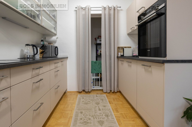 Die Küche punktet mit einem direkt angeschlossenen Abstellraum, sodass Vorräte und Haushaltsutensilien stets griffbereit sind. Neben dem Schlafzimmer stehen Ihnen zwei weitere Zimmer zur Verfügung, die Sie flexibel nach Ihren Bedürfnissen gestalten können – ob Kinderzimmer, Homeoffice, Gästezimmer oder Fitnessraum.
