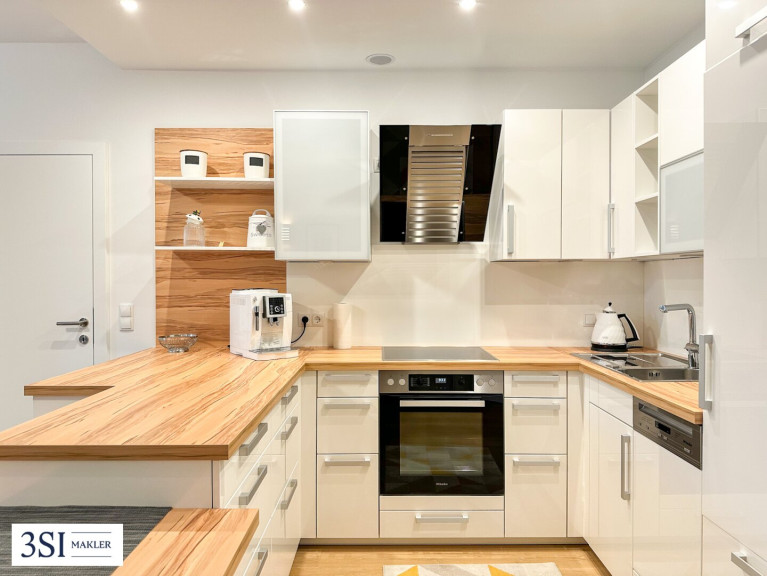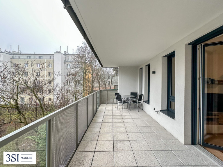 Herzstück der Wohnung ist die großzügige Wohnküche mit rund 32 m², die viel Raum für Wohnen, Kochen und Genießen bietet. Von hier aus gelangt man direkt auf den großen Balkon, der den Wohnraum ideal ins Freie erweitert.